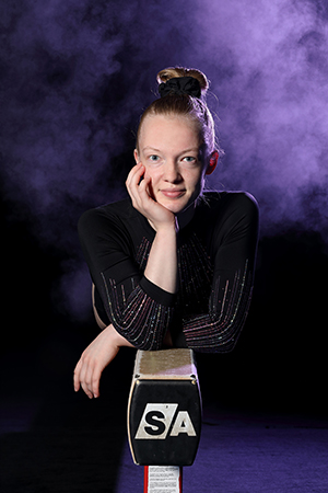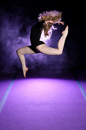 Individually tailored "fog" gymnastics portrait sessions bring the drama to the gym!
